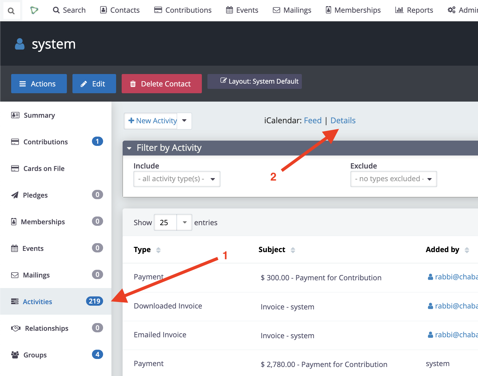 • General description: This feature provides an iCalendar feed for each contact containing the contact's upcoming (in the future) assigned activities, suitable for subscription via Google Calendar, Microsoft Outlook, and/or similar software.