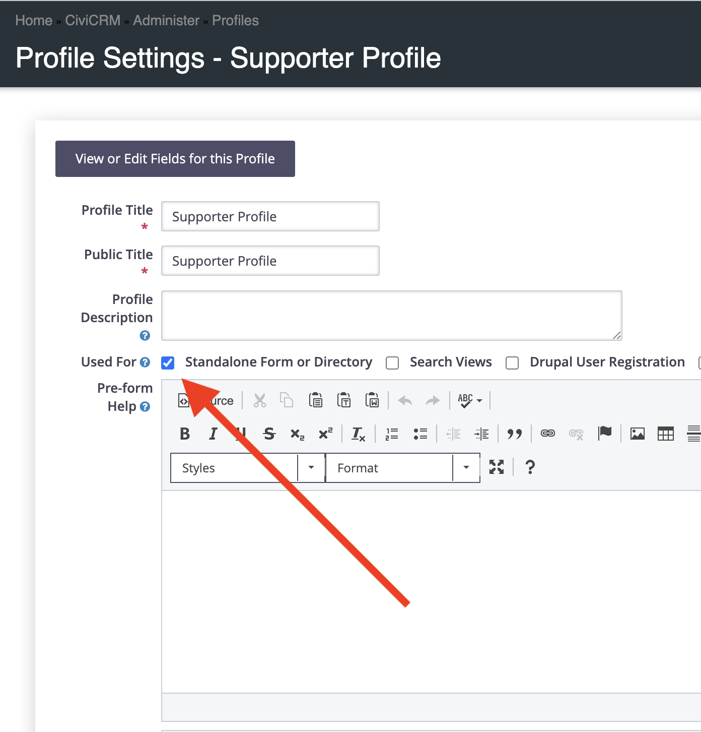 To embed a stand-alone form you must create a profile and add the fields you want to the profile. One setting you must have for the Profile Form to work is the 'Used For' setting must be set to 'Stand Alone Form or Directory'.