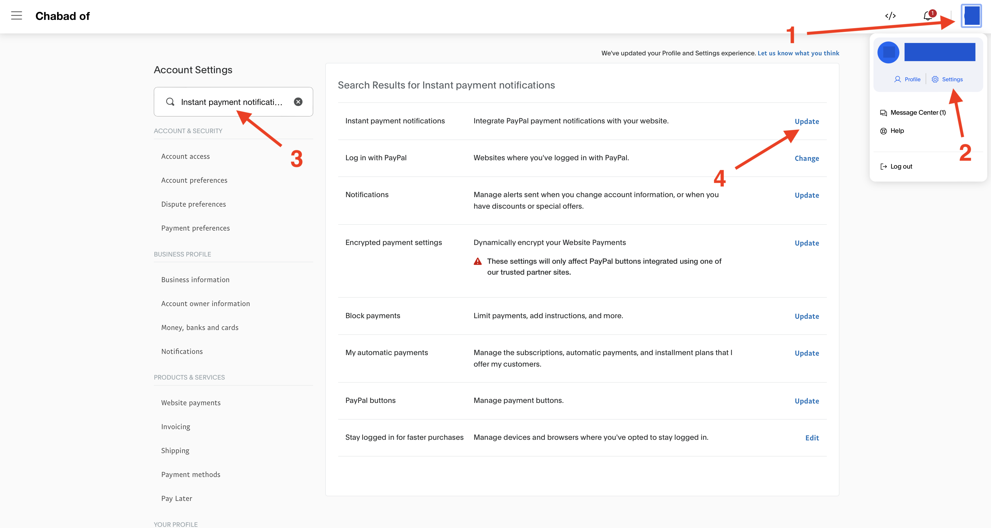 - Enter the URL in the "Notification URL" field: https://YOURCHABADSUITE.COM/civicrm/payment/ipn/3